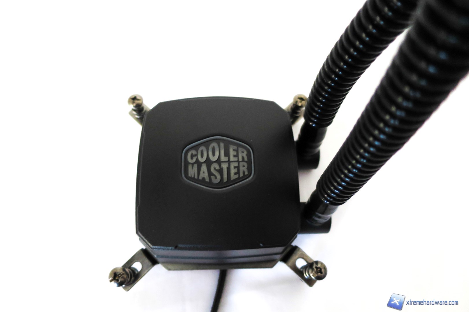Dettaglio del logo Cooler Master illuminato di notte quando avremo il PC e l’AIO in funzione.