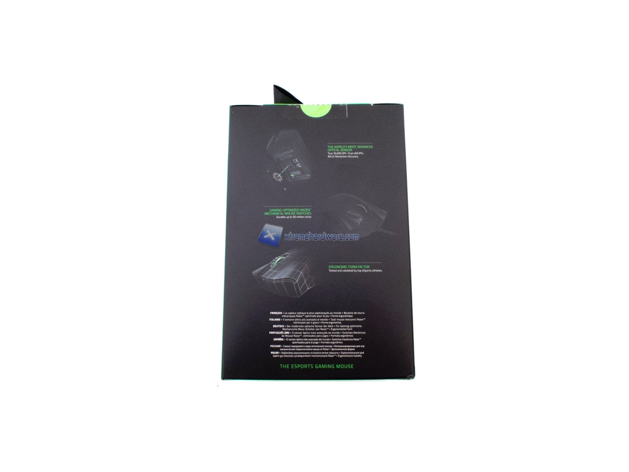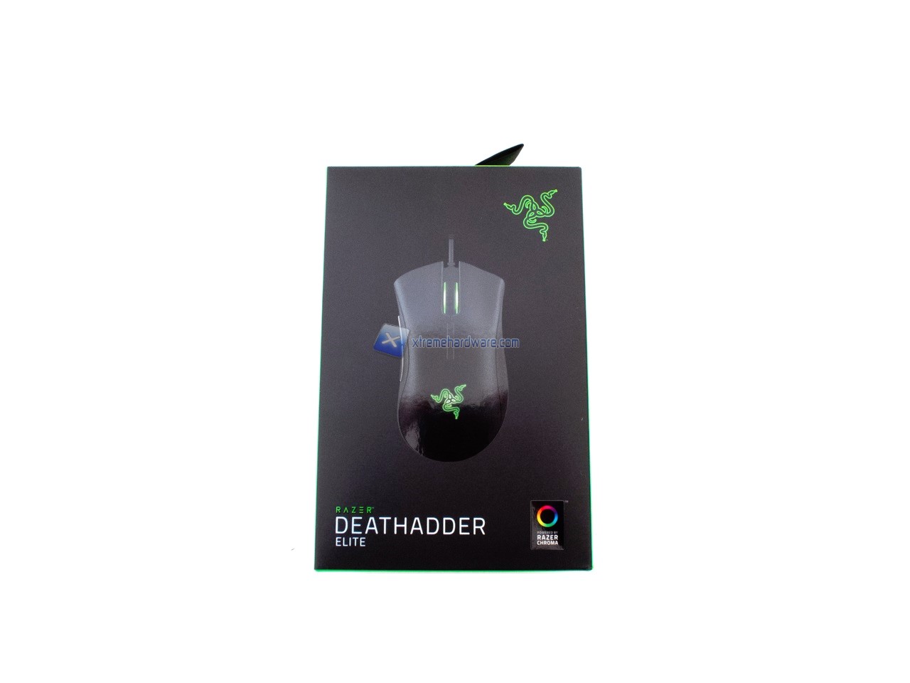 Il DeathAdder Elite ci giungerà sempre nella classica confezione di cartone in duplice colorazione Nero/Verde a rimarcare il brand stesso. Nella parte frontale troveremo la classica immagine illustrativa del prodotto e altre informazioni. In quella posteriore altre immagini illustrative e caratteristiche principali.